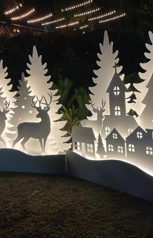 Sí. Se fabrican ambientaciones temáticas para navidad, fechas comerciales, lanzamientos y eventos. En esos casos se prioriza el uso de materiales y sistemas de montaje que permitan reutilizar las piezas en temporadas siguientes, optimizando la inversión.